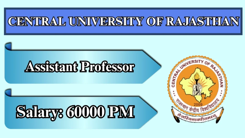Central University of Rajasthan Recruitment 2026 for 02 posts of Assistant Professor. Candidates with M.Sc Can wait for the walkin. The Walk-in on 02-02-2026. For detailed information please visit Central University of Rajasthan official website,Central University of Rajasthan.ac.in.